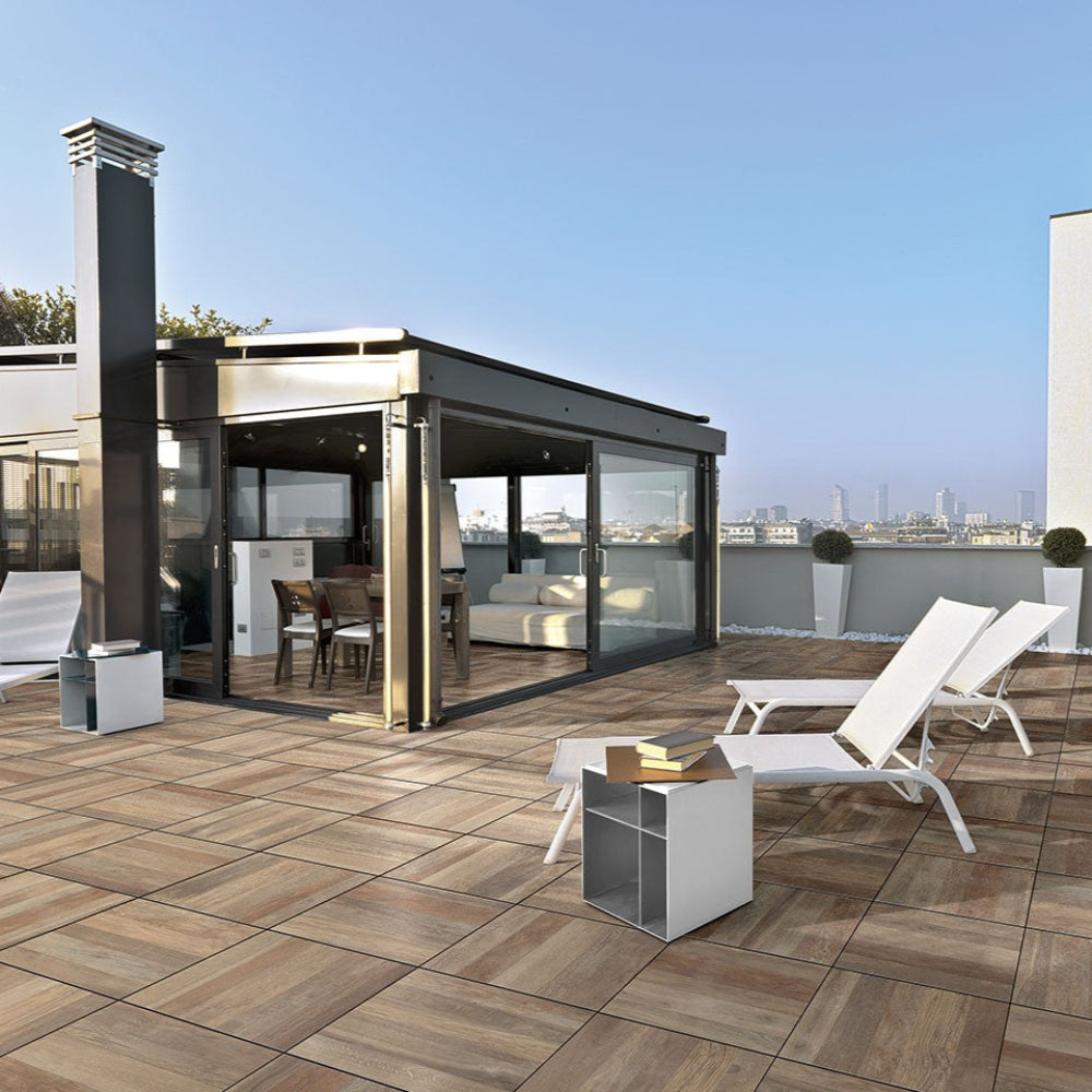Inspired by the natural warmth of oak, Ultra Wood offers the beauty of timber with the durability of porcelain. Its 45 x 45 cm format and 18 mm thickness make it ideal for outdoor settings, while the R11 anti-slip rating ensures safe, stylish surfaces in all conditions.